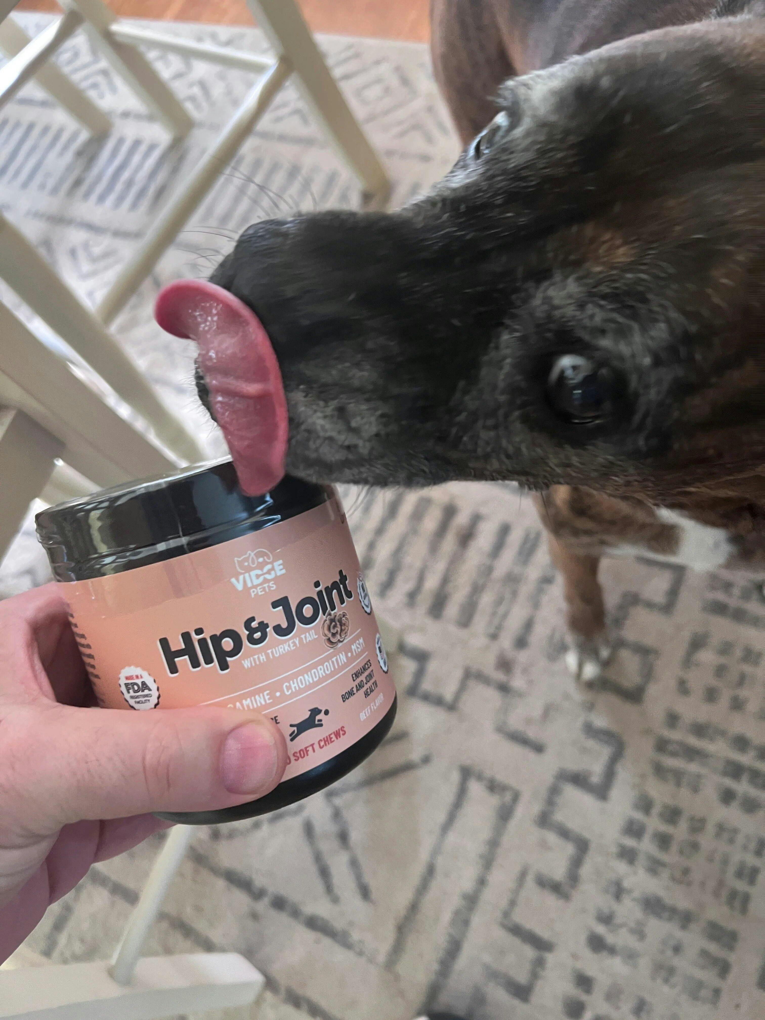 Slow, stiff mornings, hesitation on the stairs, or skipping favorite games aren’t “just getting old.” They’re signs your dog’s joints are under stress. Most fixes are short-term: pain meds, rest, or hoping it “gets better.” Vidge Pets Hip & Joint Support Chews work from the inside out. With organic Turkey Tail extract, glucosamine, chondroitin, MSM, and green-lipped mussel, they help cushion joints, calm everyday inflammation, and bring back that loose, happy movement you remember.